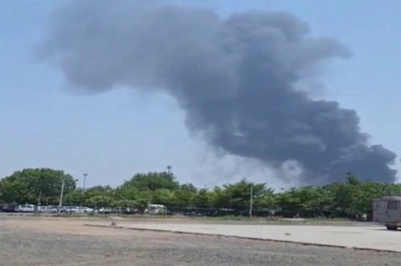 PTI haber ajansı tarafından paylaşılan görüntülerde, havalimanı bölgesinden gökyüzüne yoğun siyah dumanların yükseldiği görüldü.