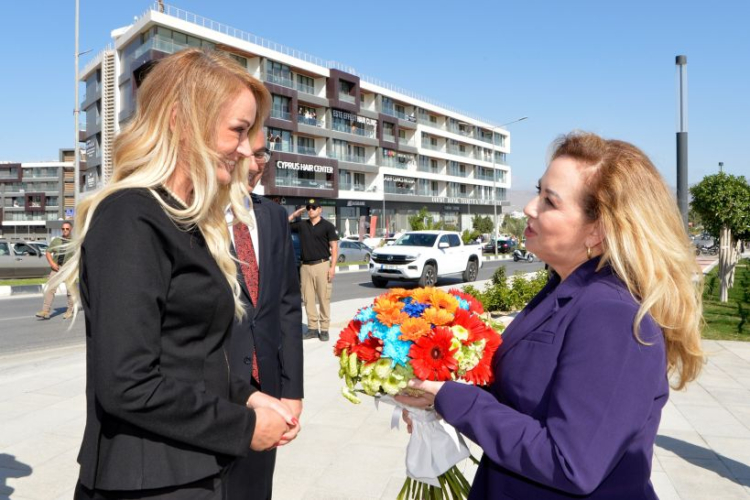 KKTC (İGFA) - Cumhurbaşkanlığı’nda düzenlenen devir-teslim töreninde Cumhurbaşkanı Tufan Erhürman ve eşi Nilden Bektaş Erhürman’ı, 5. Cumhurbaşkanı Ersin Tatar ve eşi Sibel Tatar karşıladı. Sibel Tatar, Nilden Erhürman’a bir buket takdim etti.