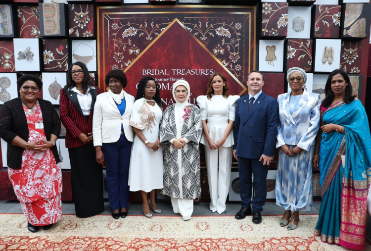 Bu birlikteliğin Osmanlı saraylarına has çeyiz kültüründe farklı bir boyut aldığını aktaran Emine Erdoğan, özgün işlemeleri ve kıymetli materyalleri ile Osmanlı sultanları için özel hazırlanmış çeyiz ürünlerinin, halkın katıldığı büyük bir törenle gelinin yeni evine taşındığını dile getirdi.