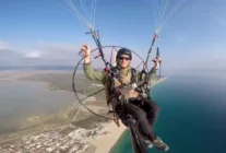 Saros'ta eski gazeteciden paramotorla manevi uçuş