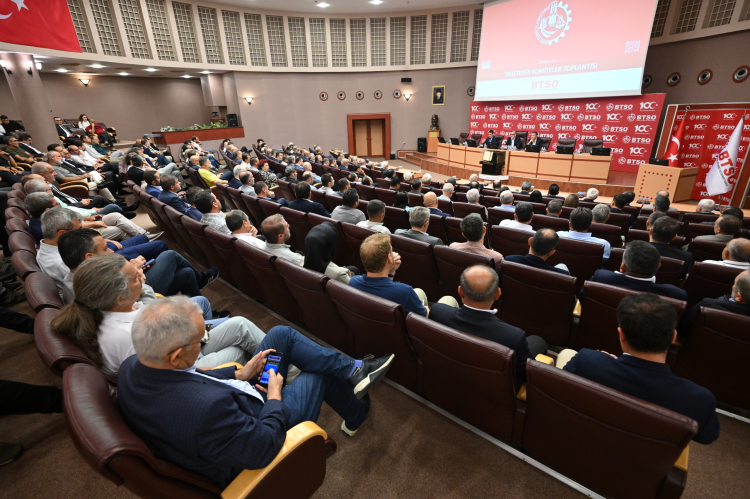 BURSA (İGFA) - Bursa Ticaret ve Sanayi Odası (BTSO) Müşterek Meslek Komiteleri ve Eylül Ayı Meclis Toplantısı Oda Hizmet Binası’nda gerçekleştirildi. BTSO çatısı altındaki 70 meslek komitesini bir araya getiren toplantıda konuşan BTSO Yönetim Kurulu Başkanı İbrahim Burkay, sıkılaşmaya dayalı dezenflasyon hedefli ekonomi programının etkilerinin tüm sektörler üzerinde yoğun bir şekilde hissedildiği bir süreçten geçtiklerini söyledi. Oda olarak sektörlerin sorunlarına çözüm üretmek, firmaların zorlu süreci en az hasarla atlatmalarını sağlamak amacıyla çalışmalarını sürdürdüklerini belirten Başkan Burkay, “Bu çalışmaları, her bir sektörümüzün sorunlarını en iyi bilen komitelerimizle, konseylerimizle ve meclis üyelerimizle birlikte gerçekleştiriyoruz. Komitelerimiz sadece iş dünyasına karşı değil, aynı zamanda yaşadığımız topluma karşı da büyük bir sorumluluk taşıyor. Sizler, bu sorumluluğu omuzlarınızda taşıyıp, el birliğiyle daha iyi günler için mücadele ediyorsunuz. Sektörümüzün nabzını tutuyor, firmalarımızın taleplerini Odamız çatısı altında en iyi şekilde dile getiriyorsunuz. Gayretleriniz, emekleriniz ve fedakârlıklarınız için her birinize ayrı ayrı teşekkür ediyorum.” ifadelerini kullandı.