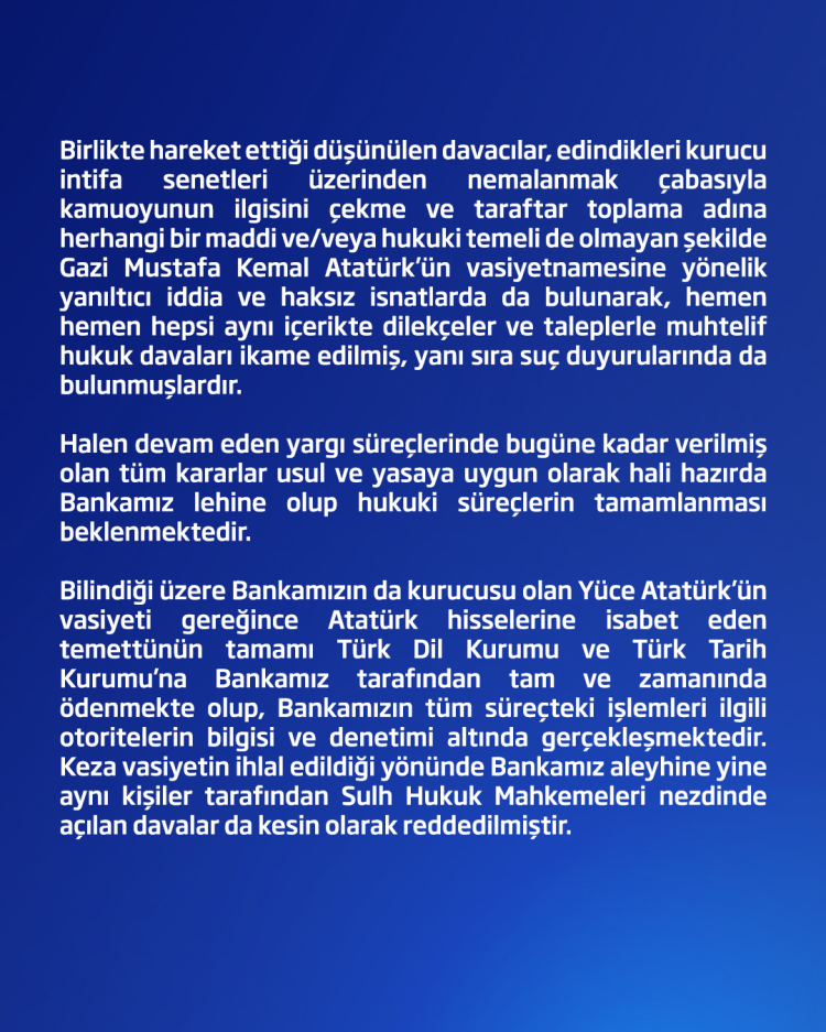 İşbankası, sosyal medyada "Kayyum atanacak" iddialarını sosyal medya üzerinden yapılan açıklamayla yalanladı.