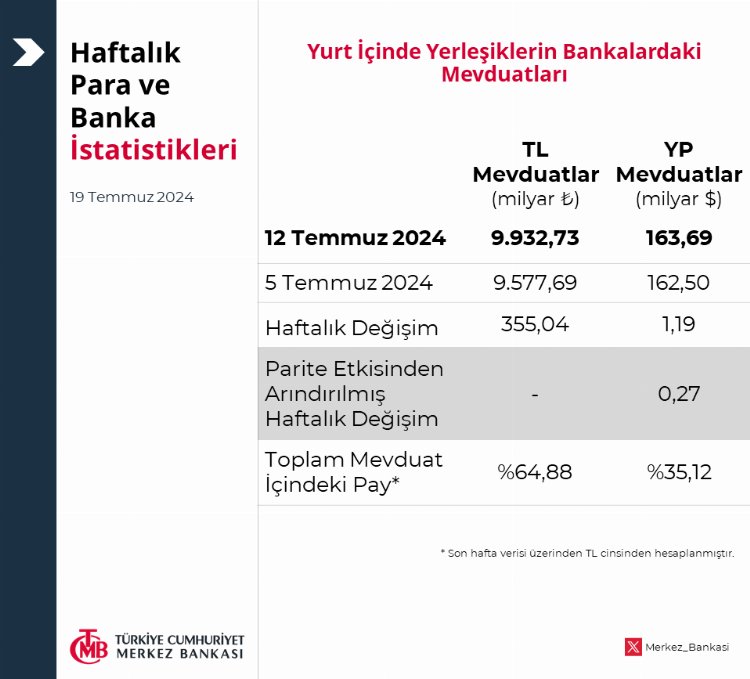 ANKARA (İGFA) - Merkez Bankası haftalık para ve banka istatistiklerini açıkladı.