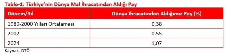 1980–2000 yılları arasında dünya mal ihracatından aldığı payın ortalama yüzde 0,38 olduğunu hatırlatan Bolat, 2024 itibarıyla bu payın yüzde 1,07’ye yükseldiğini ifade etti.