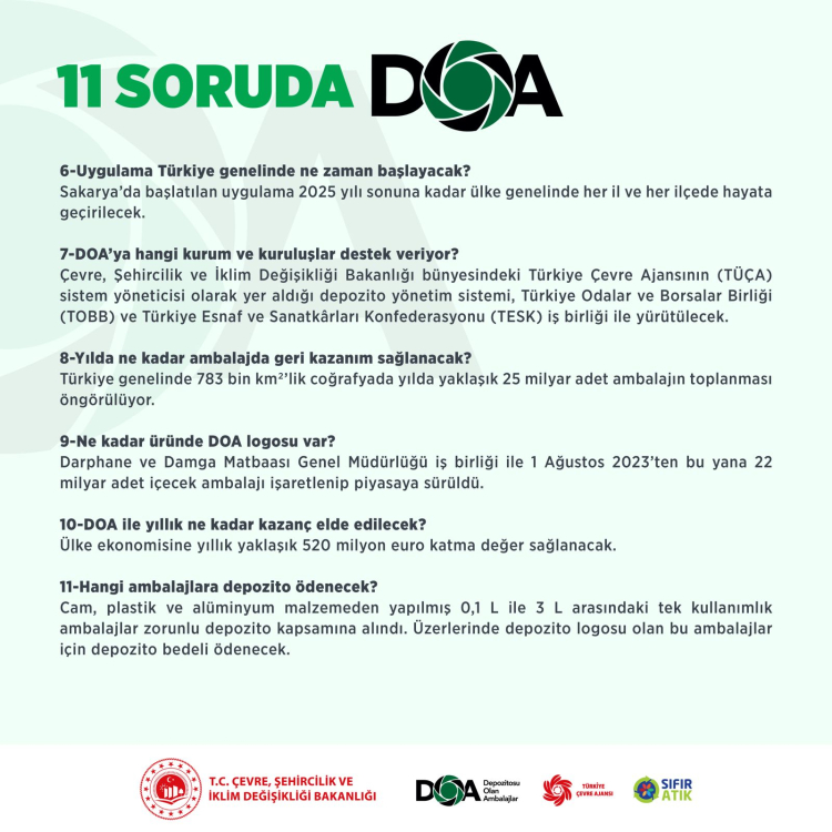 Çevre, Şehircilik ve İklim Değişikliği Bakanlığı, Depozito Saha Yönetimi Sistemi ile ilgili merak edilen soruları ve yanıtları şöyle: