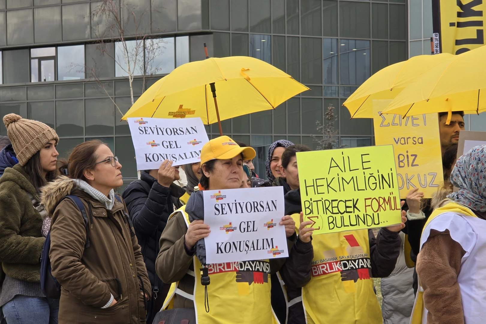 Birlik ve Dayanışma Sendikası 3 No'lu Şube Disiplin Kurulu Üyesi Hemşire Canan Şahin, Ankara İl Sağlık Müdürlüğü önünde yaptığı ortak açıklamada, Sağlık Bakanlığı’nın, 1 Kasım’da yürürlüğe giren Aile Hekimliği Sözleşme ve Ödeme Yönetmeliği'ne 'hayır' dedi.