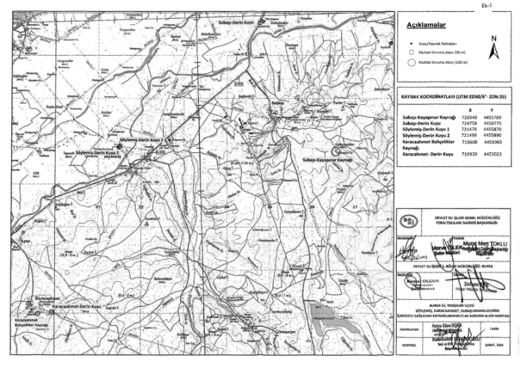 BURSA (İGFA) - Tarım ve Orman Bakanlığı Devlet Su İşleri Genel Müdürlüğünün Resmi Gazete'de yayımlanan ilanında Bursa'nın Yenişehir ilçesine can olan içme suyu kaynak ve kuyularının koruma altına alınmasına karar yayımlanırken, bu kuyu ve kaynaklara ilişkin bilgiler ve koordinatlar yer aldı.