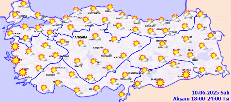 ANKARA (İGFA) - Meteoroloji Genel Müdürlüğü 10 Haziran Salı gününe ilişkin hava tahmin raporunu yayımladı.