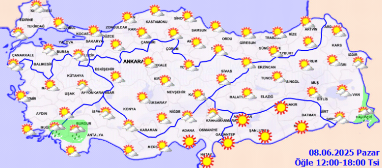 BURSA (İGFA) - Meteoroloji Genel Müdürlüğü, 8 Haziran Pazar gününe ilişkin hava tahmin raporunu yayımladı.