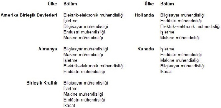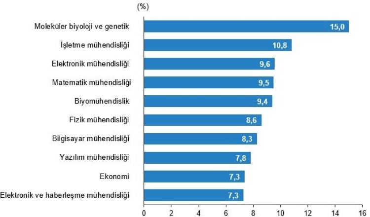 Bölümler bazında en yüksek beyin göçü oranına sahip lisans programı moleküler biyoloji ve genetik oldu. Bu bölümü sırasıyla işletme mühendisliği (yüzde 10,8), elektronik mühendisliği (yüzde 9,6), matematik mühendisliği (yüzde 9,5) ve biyomühendislik (yüzde 9,4) takip etti.