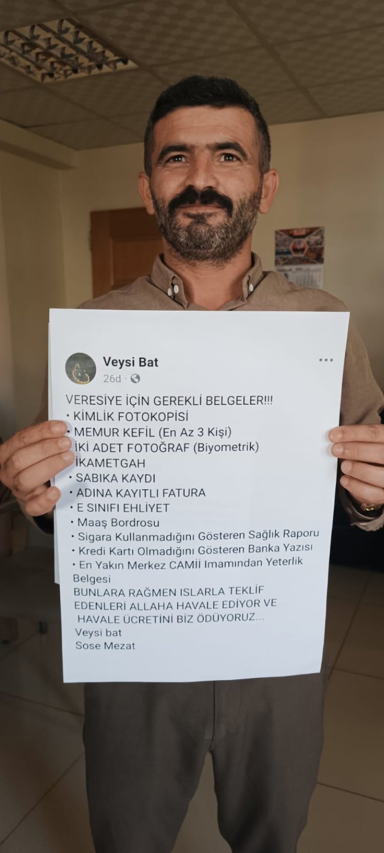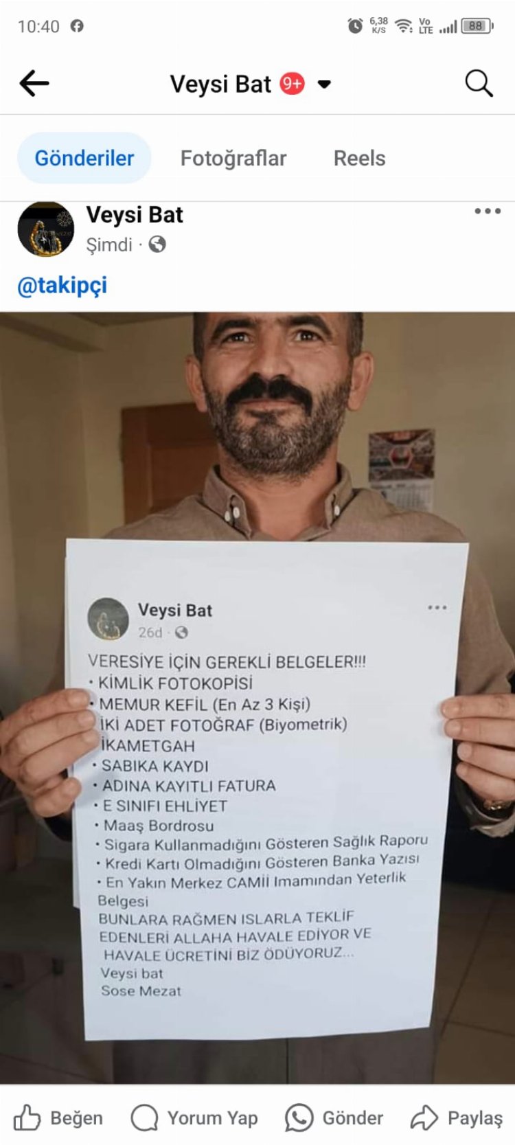 Şehmus EDİS / MARDİN (İGFA) - Mardin’e bağlı Yeşilli ilçesinde ikamet eden ve İnternet üzerinde teşbih satarak geçimini sağlayan 36 yaşındaki Mezatçı Veysi Bat, piyasadan 100 bin TL alacağını tahsil edebilmek için borcunu ödemeyen müşterilerinin listesini internet üzerinden teşhir etmeye karar verdi.