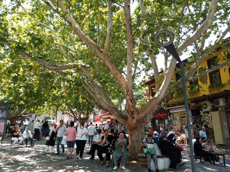 Bursa’da sıcak havalarda çınar gölgeleri, vatandaşların uğrak noktası oluyor.