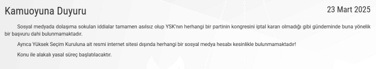 CHP'nin olağanüstü kurultay kararının Yüksek Seçim Kurulu'nca iptal edildiğine dair sosyal medyada çıkan iddialara açıklama geldi.