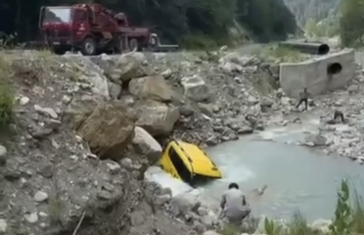 Özgür D. yönetimindeki 81 T 1102 plakalı ticari araç, sürücüsünün direksiyon kontrolünü kaybetmesiyle şarampole yuvarlandı. Araç, dereye devrilerek kısmen suya gömüldü.
