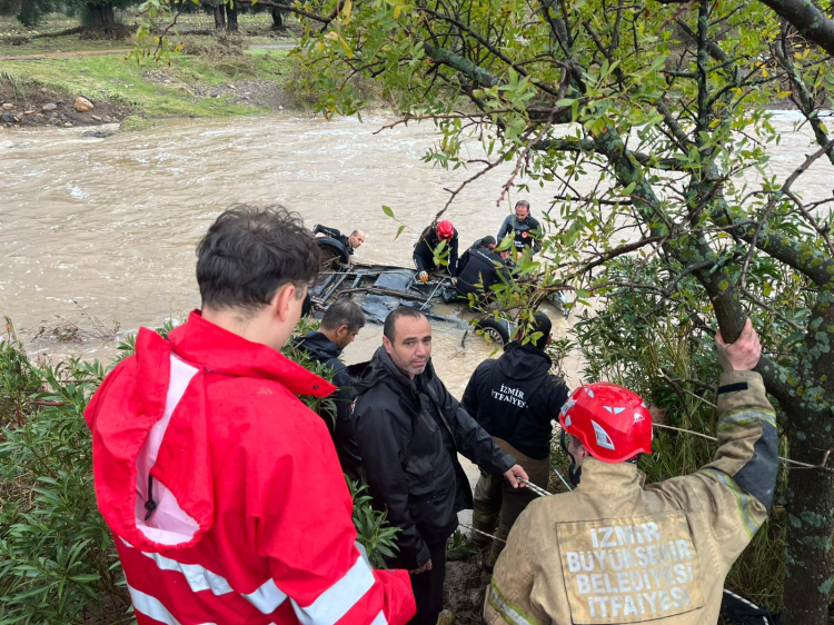 Yağışın etkili olduğu bölgede bir aracın sel sularına kapılarak Bucak Deresi’ne düştüğü öğrenildi. Araçta birilerinin olma ihtimaline karşı İzmir İtfaiyesi ekipleri araç içerisinde ve derede arama kurtarma çalışmaları sürdürüyor.