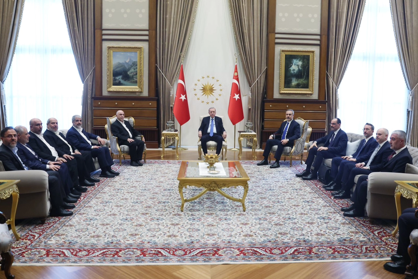 ANKARA (İGFA) - Cumhurbaşkanı Erdoğan, Hamas Şura Meclisi Başkanı Derviş‘i kabul etti. Kabulde Cumhurbaşkanı Erdoğan'a, Dışişleri Bakanı Hakan Fidan, MİT Başkanı İbrahim Kalın, İletişim Başkanı Fahrettin Altun, Cumhurbaşkanlığı Özel Kalem Müdürü Hasan Doğan, Cumhurbaşkanı Dış Politika ve Güvenlik Başdanışmanı Akif Çağatay Kılıç ve Başdanışman Sefer Turan eşlik etti.