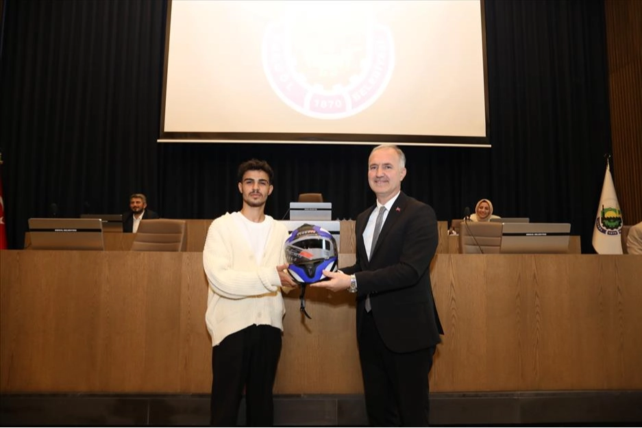 Meclis toplantısı açılışında Enes Kaya’ya kask hediye eden Belediye Başkanı Alper Taban, “Bugün aramızda Enes Kaya arkadaşımız var. Geçtiğimiz günlerde kendisiyle ilgili bir paylaşım yapmıştık. Kendisi kuryelik yapıyor ve motoruyla seyir halindeyken ışıklarda elindeki çöpünü yere atmayıp cebine koyarak güzel bir harekette bulundu. Farkındalığı arttırıcı, teşvik edici bir davranış oldu. Ben bu duyarlılığından dolayı kendisine çok teşekkür ediyorum. Bugün de kendisini davet ettik. Motor kullandığı için de kask hediye etmek istedik” dedi.