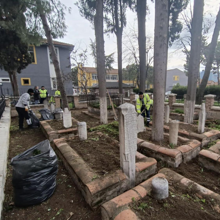 İznik Mahmud Çelebi Camii’nin haziresinde bakım onarım