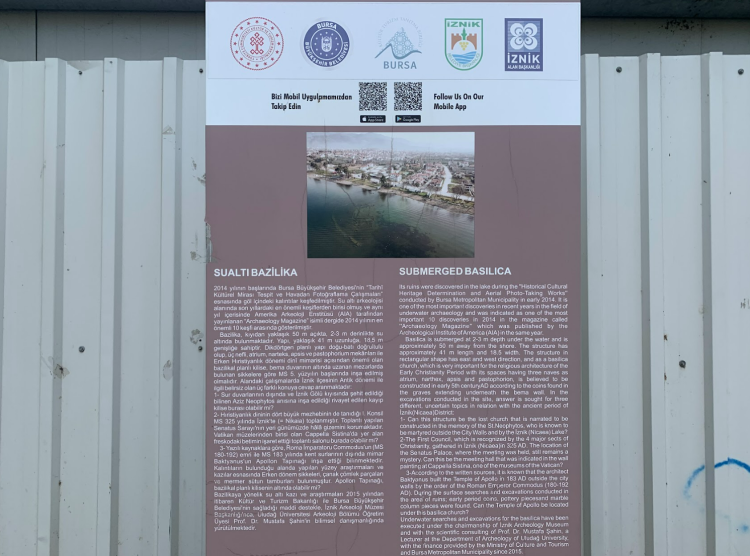 İznik’te bulunan bazilika İznik Gölü’nün 20 metre açığında ve 1 metre derininde yer alıyor.