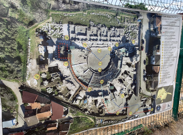 İznik surlarının ortalama 100 metre kuzeyinde yer alan ve arena ile seyircilerin oturduğu kısmı büyük ölçüde ayakta kalan tiyatro, günümüzde ücretsiz olarak ziyarete açık.