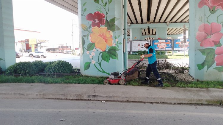 Daha mutlu ve sağlıklı bir yaşam için şehri baştan aşağı temizleyen Büyükşehir, orta refüj, yol kenarları, kaldırım üzerleri ve diğer yeşil alanlarda da ot biçme ve peyzaj çalışmalarını titizlikle sürdürüyor.
