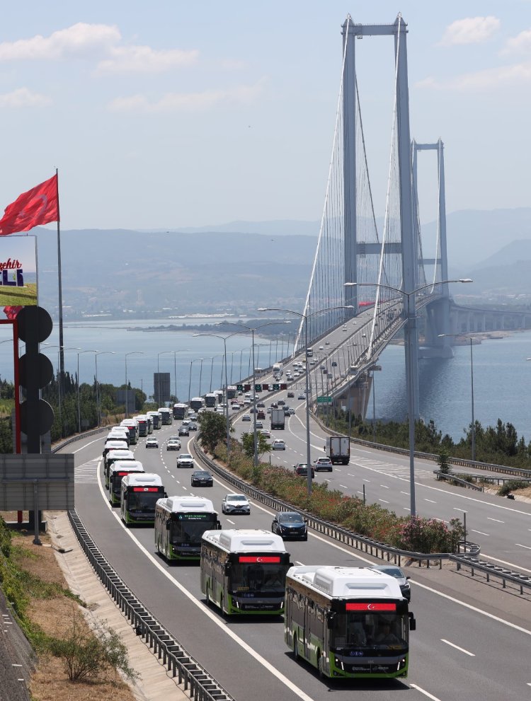KOCAELİ (İGFA) - Akıllı kavşak uygulamalarından yeni köprü ve yolların açılışına kadar ulaşımın her alanında yatırımlarını sürdüren Büyükşehir Belediyesi, toplu taşıma hizmeti verdiği otobüs filosunu da her geçen gün büyüterek vatandaşın konforlu ve rahat seyahat etmesini sağlıyor. Bu kapsamda Büyükşehir, 50’si 12 metre, 31’i körüklü olmak üzere toplam 81 yeni otobüs alımı için ihale yapmış ve ihaleyi kazanan firma 81 araçtan 20’sini Temmuz ayının ilk haftasında teslim etmişti. Son olarak 30 araç daha Osmangazi Köprüsü’nden Kocaeli’ne giriş yaptı.