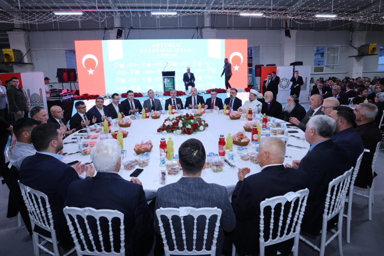 Mardin Valiliği ve Büyükşehir Belediyesi tarafından düzenlenen İlçe İftar Programları kapsamında, Artuklu ilçesinde gerçekleştirilen “Kardeşlik İftarı”, Müslüman, Süryani ve Ezidi Dinleri temsilcileri başta olmak üzere yoğun bir katılımla Artuklu Fuar Alanı’nda yapıldı.