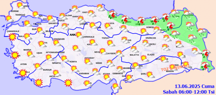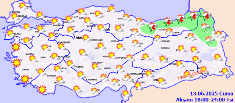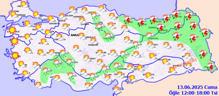 ANKARA (İGFA) - Meteoroloji Genel Müdürlüğü, 13 Haziran Cuma gününe ilişkin hava tahmin raporunu yayımladı.