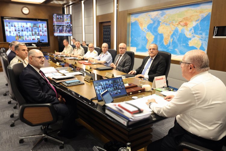 Millî Savunma Bakanı Yaşar Güler, TSK Komuta Kademesi, Bakan Yardımcıları ve Birlik Komutanlarının da hazır bulunduğu video telekonferans toplantısında terörle mücadele başta olmak üzere devam eden faaliyetlere yönelik önemli mesajlar verdi.