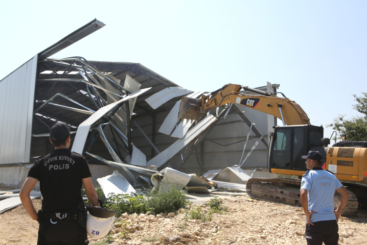 BURSA (İGFA) - Nilüfer Belediyesi kaçak olarak inşa edilen yapılarla mücadelesini sürdürüyor. Yapı Kontrol Müdürlüğü’ne bağlı ekipler tarafından ruhsatsız yapılar yıkılıyor. Nilüfer Belediyesi yıkım ekipleri tarafından Tahtalı Mahallesi’nde verimli tarım alanları üzerine inşa edilen 1400 metrekare ve 800 metrekarelik iki yapı yerle bir edildi. Çevik kuvvet ve zabıta ekiplerinin de geniş güvenlik önlemleri aldığı yıkımda herhangi bir olumsuzluk yaşanmadı.