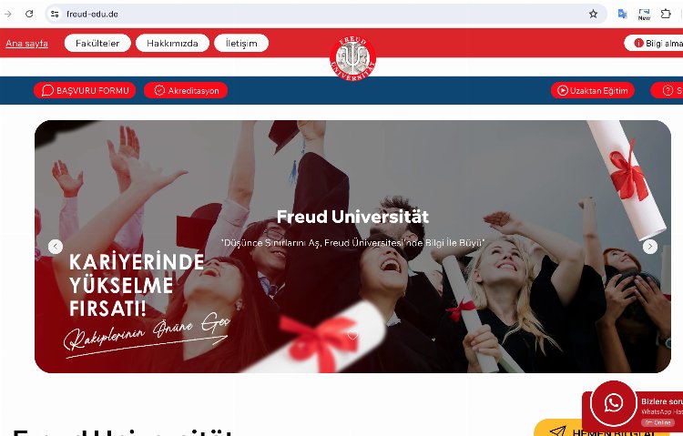 “Gerçekte olmayan Freud Üniversitesi www.freud-edu.de adresinde faaliyet gösteriyor. Burada da bir imla oyunu var. Sadece üniversitelerin kullanabildiği “edu” uzantısı alınmış gibi gösteriliyor. Tire işareti (-) yerinde nokta (.) olsaydı bu gerçek bir üniversite adresi olacaktı. “freud-edu.de” herkesin bir domain şirketinden alabileceği bir domain. Hiçbir belge gerektirmiyor ve birkaç dolara alınabilir bir adres. Ne yazık ki, gerçekte var olmayan üniversite şu an yayında ve kayıt almaktadır. Almanya’da olduğu iddia edilen bu üniversite gerçekte yok! Avusturya Freud Üniversitesi’ni taklit ederek algı yaratıp binlerce kişiyi dolandırmaktadır. Linkedin’de “Prof. Dr.” ünvanını kullanan Ali İlseven’in profilinde Almanya Freud Üniversitesi’nde mütevelli başkanı olduğu yazıyor."