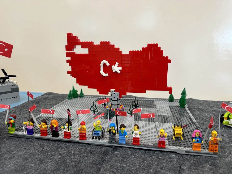 Öğrenciler, legolarla Türk Bayrağı, tank, askeri gemi, uçak yapan öğrenciler o gece gösterilen fedakarlığı bu tabloyla gösterdi.
