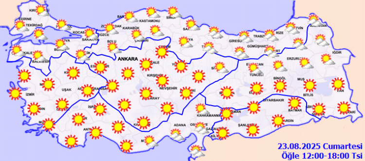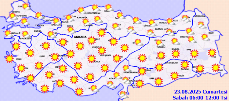 Meteoroloji Genel Müdürlüğü’nün 23 Ağustos 2025 tarihli değerlendirmelerine göre, Türkiye genelinde yaz havası etkisini sürdürüyor.