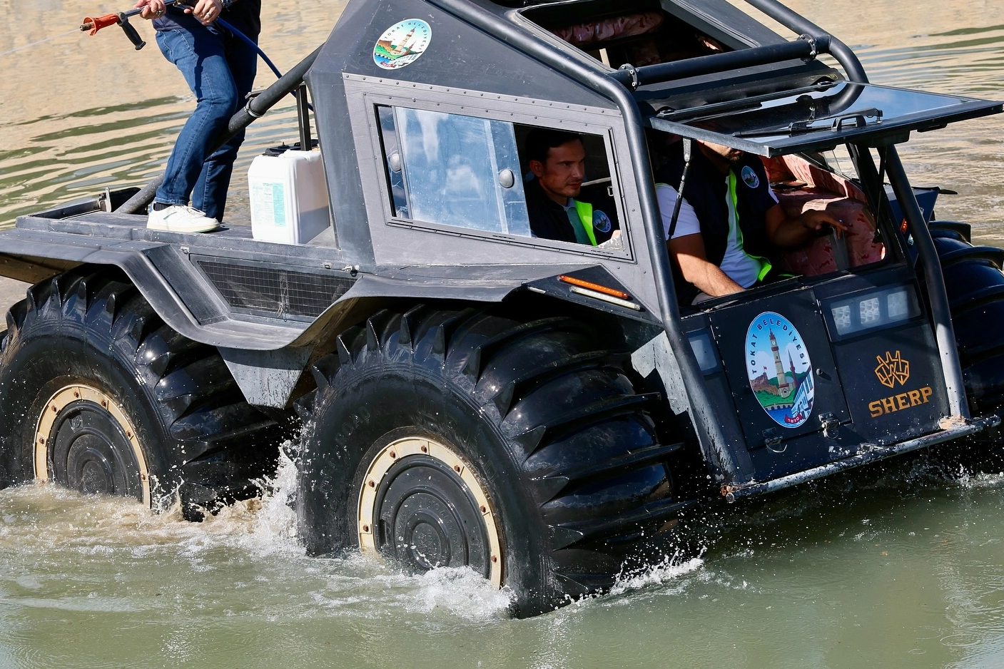 Yeşilırmak'ın içinde yapılan ilaçlama çalışmasında adeta bir film sahnesini andıran görüntüler verdi. Karada, suda, bataklık alanlarda rahatlıkla kullanabilecek araçla sivrisinek, sinek ve haşerelere karşı ilaçlama yapılacağını belirten Başkan Yazıcıoğlu, Tokat'ta bir ilk olduğunu söylerken deneme sürüşünü gerçekleştirdi ve Tokat'a hayırlı olmasını diledi.