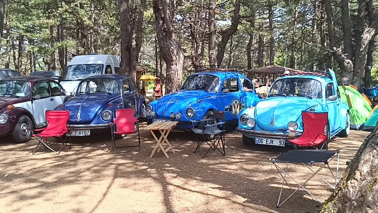 Türkiye’nin her ilinden Vosvos severlerin katıldığı etkinlikle Volkswagen otomobiller ilçe merkezinde ve köylerinde konvoy düzenlerken, araçlar Küçükelmalı Tabiat Parkında sergilendi.