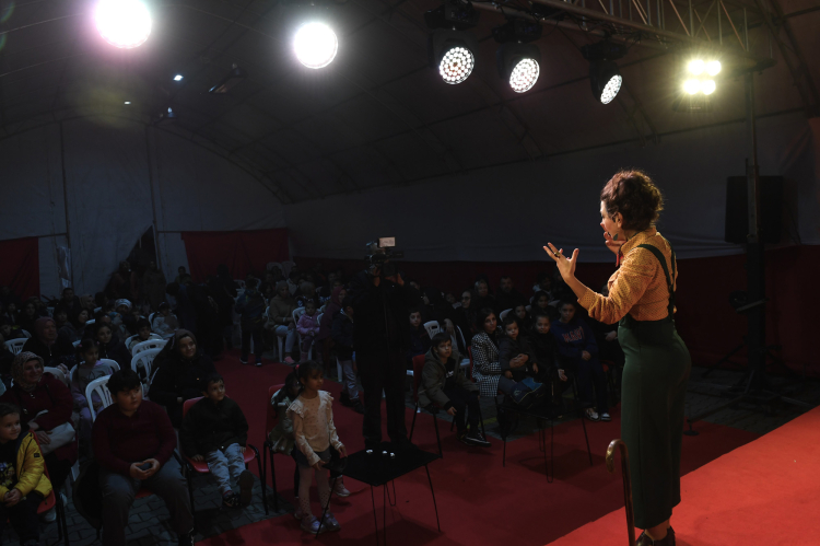 Tiyatro Oyuncusu Gözde Akın, “Bu oyunda Karagöz, Nasrettin Hoca ve Keloğlan’ı birlikte sahneliyorum. Oyunda seyirciler benimle birlikte oyuna dahil oluyorlar. Burada geleneğin izini hatırlatmak istedik. Oyunuz çocuklara yönelik ama yetişkinlerde haz alıyor. Burada ben bir meddah hikayesini farklı farklı rollere giderek anlatıyorum” dedi.