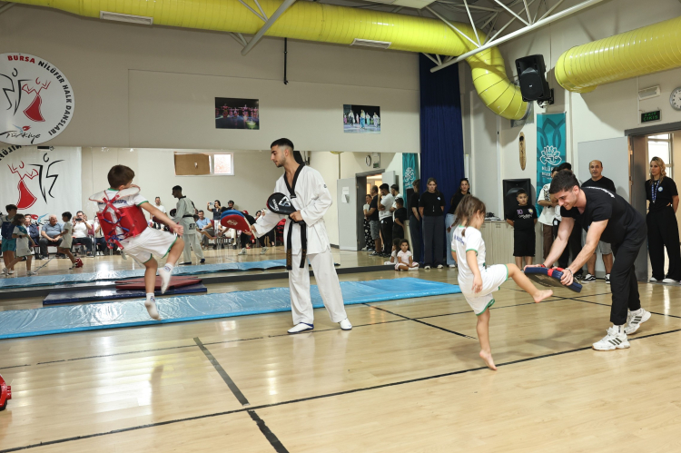 Bursa Nilüfer Belediyesi ve Nilüfer Belediyespor iş birliğinde düzenlenen “Tam Gün Spor Etkinlikleri”nde yaz boyu eğitim alan 6 ile 12 yaş arası çocuklar, öğrendiklerini yıl sonu gösterisinde sergiledi.