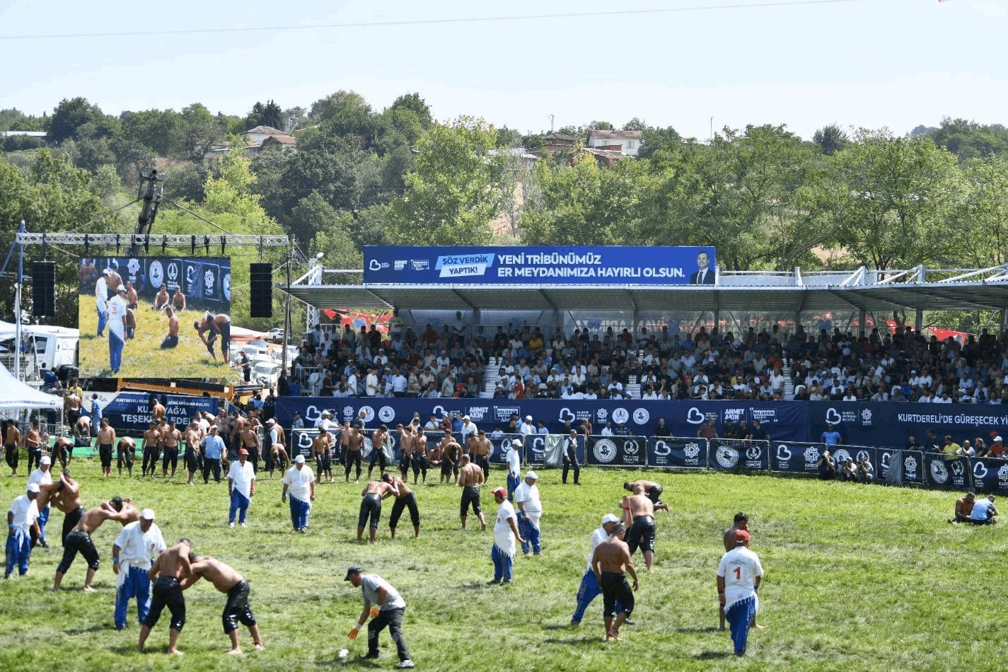 Balıkesir Büyükşehir Belediye Başkanı ve Yağlı Güreş Birliği Başkanı Ahmet Akın, geçtiğimiz yıl güreşseverlere verdiği sözü yerine getirerek Kurtdere Er Meydanı’na yeni tribün kazandırdı.