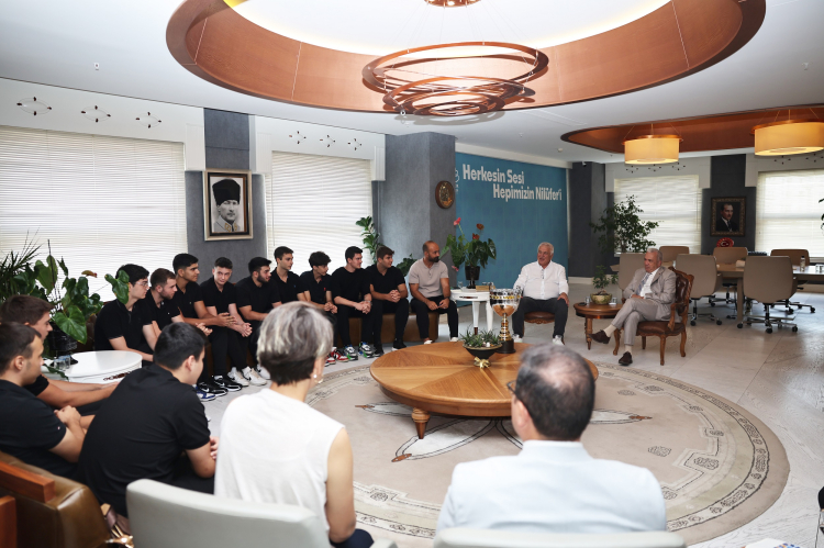 Şampiyonluk sevinçlerini Nilüfer Belediyesi’ni ziyaret ederek Başkanı Şadi Özdemir ile paylaşan yıldız erkekler hentbol takımının oyuncuları, şampiyonluk hikayelerini paylaştı.