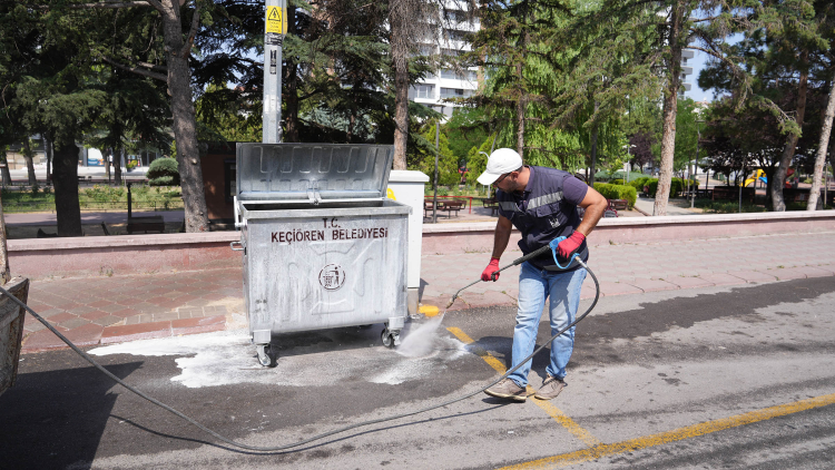 ANKARA (İGFA) - Ankara'nın Keçiören ilçesinde çöp konteynerlerinin çevresi temizlenip dezenfektesi yapılarak konteynerler daha hijyenik bir hale getirildi.