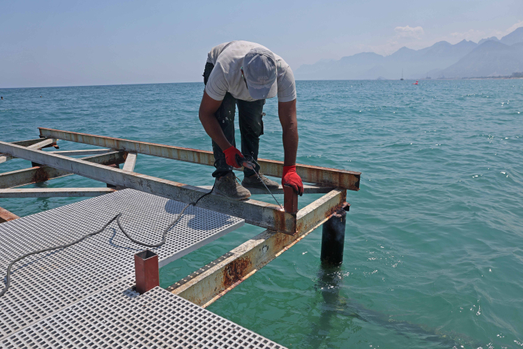 Antalya’da yaşayan ya da şehir dışından tatil için kente gelen engelli vatandaşların rahatlıkla denize girebildiği, geçtiğimiz yıl da 44 bin kişiye hizmet veren Konyaaltı Sahili’ndeki Büyükşehir Belediyesi Engelsiz Plaj yeniden düzenlenip bakım ve onarımı yapılarak engelli vatandaşların kullanabileceği hale getiriliyor. Büyükşehir Belediyesi Fen İşleri Dairesi Başkanlığı ekipleri, iskele ve donatıları yeniliyor. Plajın iskelesi dalga ve fırtınalardan etkilenmemesi için ahşap malzeme yerine daha sağlam ve kaliteli bir malzemeyle yenileniyor. Plaja ait cankurtaran kulesi de iskele üzerine monte ediliyor. Ayrıca bu yıl engelli bireylerin denize ulaşımını sağlayacak yatay asansör sistemi de yenileniyor.
