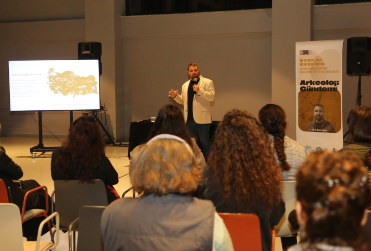 Programın ilk konuğu Bilecik Şeyh Edebali Üniversitesi Arkeoloji Bölümü Öğretim Üyesi Prof. Dr. Murat Türkteki, “Mayalanan Hayat, Mayalanan Toplum: Küllüoba Verileri Üzerinden Batı Anadolu Erken Tunç Çağı’na Bakış” başlıklı sunum gerçekleştirdi.