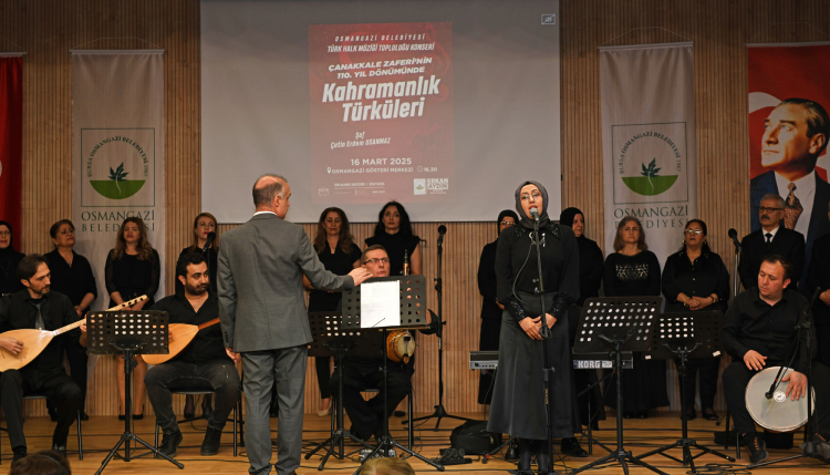 Şef Çetin Erdem Usanmaz önderliğinde gerçekleşen Kahramanlık Türküleri konserine, Osmangazi Belediye Başkan Yardımcısı Mutlu Esendemir, Gemlik Belediye Başkanı Şükrü Deviren, CHP Osmangazi İlçe Başkanı Raşit Gürbüz, davetliler ve çok sayıda Osmangazili katıldı. Konserde birbirinden özel kahramanlık türkülerini seslendiren koro üyeleri, dinleyiciler tarafından ayakta alkışlandı. Konserde söylenen türkülere ve ağıtlara eşlik eden izleyiciler, zaman zaman duygulandı.