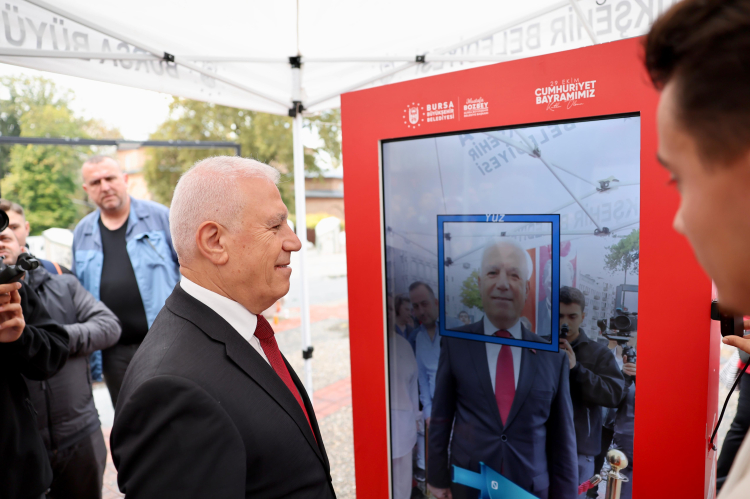 BURSA (İGFA) - Bursa Büyükşehir Belediyesi, Cumhuriyet coşkusunu daha özel kılmak ve vatandaşlara unutulmaz bir hatıra bırakmak amacıyla kentin farklı noktalarına yapay zekâ kiosklar yerleştirdi.