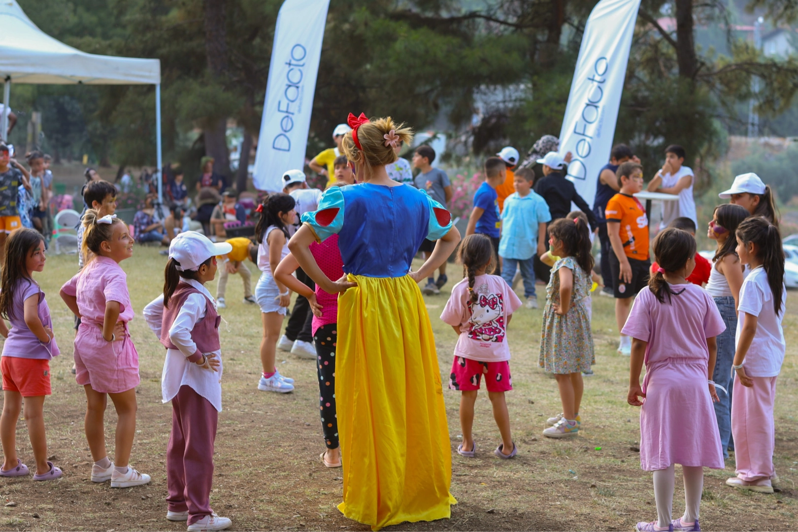 Aile ve Sosyal Hizmetler Bakanlığı iş birliğiyle Hatay Serinyol’da düzenlenen “DeFacto Bayram Şenliği”nde, Bakanlık koruması altındaki çocuklar geleneksel oyunlar, yüz boyama, palyaço, sihirbaz ve jonglör gösterileriyle keyifli bir gün geçirdi. DeFacto Gönüllüleri’nin aktif rol aldığı etkinlikte, çocuklara bayramlık kıyafetler hediye edildi.