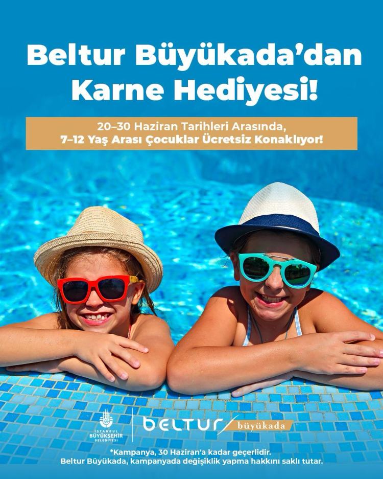 BELTUR Büyükada, 20-30 Haziran 2025 tarihleri arasında yapılan rezervasyonlarda 7-12 yaş arası çocuklara ücretsiz konaklama imkânı sunacak.