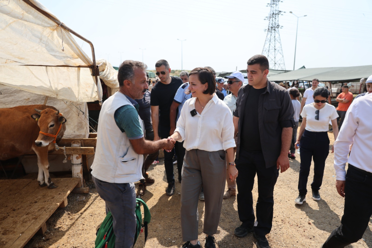 İzmir'de Karabağlar Belediye Başkanı Helil Kınay, belediyenin kendi imkânlarıyla Uzundere’de kurduğu modern kurban satış ve kesim alanını ziyaret ederken, vatandaşlar ve hayvan yetiştiricileri ile bir araya gelerek, bayramlarını kutladı.