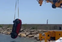 Keşan'da el freni unutulan otomobil denize uçtu