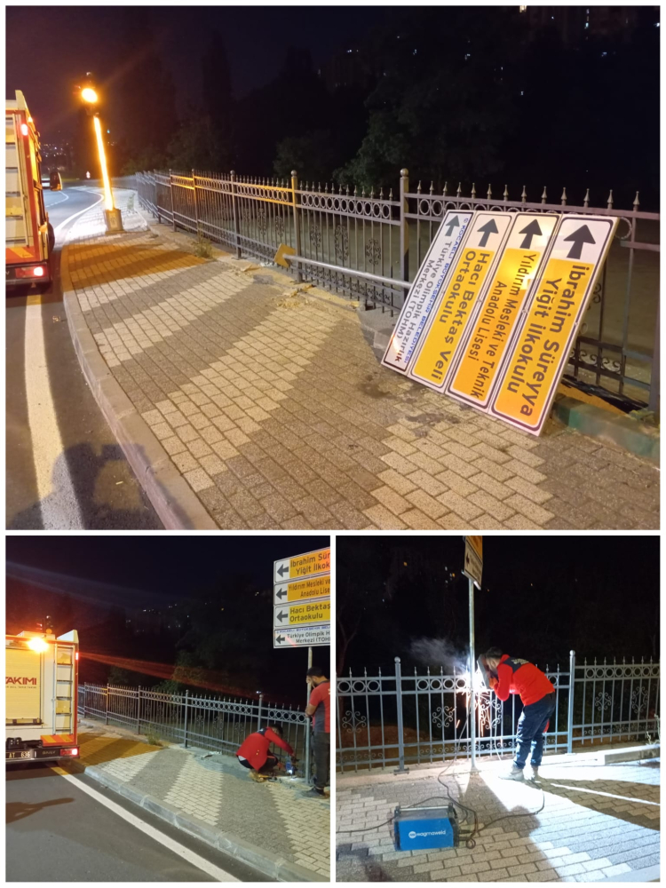 Büyükşehir ekipleri, İzmit ilçesi Bekirdere Mahallesi Kuşak Sokak Sapağında devrilmiş trafik tabelasını yeniden monte etti. Tabela düzeltmesiyle hem sürücülerin yön bulması kolaylaştırıldı hem de olası kazaların önüne geçildi. İzmit ilçesinde ise Yürüyüş Yolu üzerindeki yoğun yaya trafiğine sahip Cumhuriyet Caddesi’nde yer alan granit babaların zemindeki bozulmaları onarıldı.