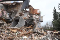 Bursa Osmangazi’de tarihi surları tehdit eden riskli bina yıkıldı